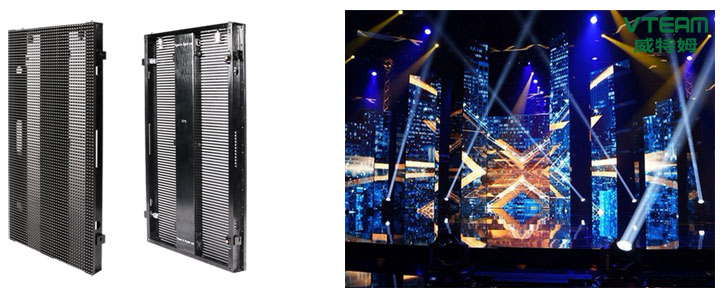 如果是对主屏幕衬托,或者背景渲染等作用,建议采用Cn系列产品。这类LED彩幕的特点是间距比较大,造价低,常见型号为P10和P12.5,模组尺寸为250mm*50mm,箱体尺寸为1000mm*500mm。