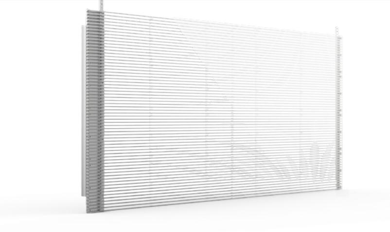 led透明屏的隐形功能分别从两方面来看,一方面是屏体结构:用肉眼看,显示屏屏体背面是看不到排线及线材、模组和电源。其实所有灯的电源及排线这些都集中在中间的专用卡盒中了,中间部分就会空出来,它的灯珠都是在一条直线上的灯条上,形成了像百叶窗一样的灯珠结构,进而减少结构部件对视线的阻碍,提升了透明屏的隐形效果。另一方面是屏体材料,led透明屏生产时,会采用两片超薄的透明基材,ITO材料印刷上线路,接着把两片对位压合,再在两片透明基材中间灌注液晶并封口封住液晶口,另外加装的有滤光功能的偏光片,达到透明效果。隐形的显像装置可以进行远程控制,实现人屏互动。