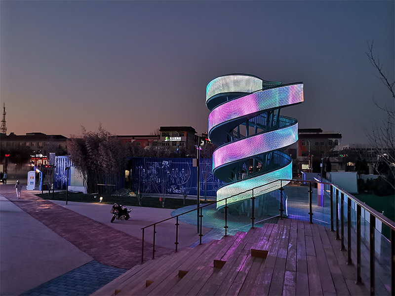 市面上,我们看到大部分LED显示屏是平面的,造型单一,显示效果平平。近年,LED曲面屏的出现,打破了传统屏规则形状的限制,不限于传统矩形和平面形状,可以随意拼接成各种不规则形状来显示,达到更好地适应建筑的整体结构和场景的效果。