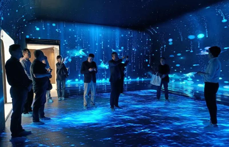 调研伊始,在体育333智慧显示相关负责人的陪同下,来访嘉宾一行参观了体育333南方总部展厅,体验智能显示、文旅展演、VR互动、全息剧场、AR沉浸式全景仿真系统等多个应用场景,沉浸式感受科技的魅力。